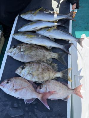 | オキアミ五目釣り出船しました、水温17℃に下がり食い渋かったです、メイチダイ釣れたんで良かったです、お疲れ様でした! |