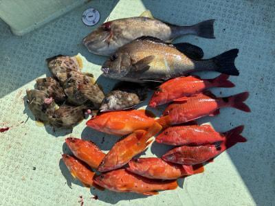 | 伝馬船釣果、コロダイ、メイチ、アカハタ、カワハギ、ウスバなどが釣れてました。 |