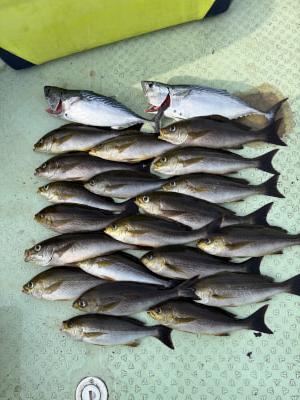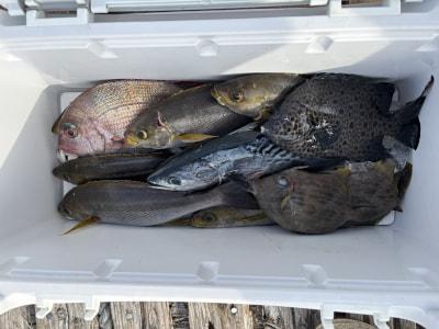 伝馬船釣果、イサギ、ヤイト、カワハギ、真鯛、アカハタなどが釣れてました。