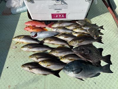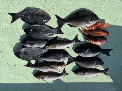 | 伝馬船釣果、イサギ、真鯛、グレ、ヤイト、メイチ、イシガキ鯛などが釣れてました。 |