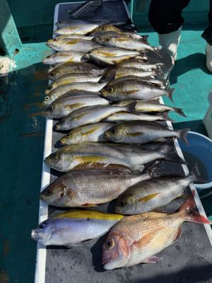 | オキアミ五目イサギ狙いに出船しました、数はそこそこ釣れましたが食い渋かったんで小ぶり多かったです、明日、明後日もオキアミ五目釣り出船します、よろしくお願いします、お疲れ様でした! |