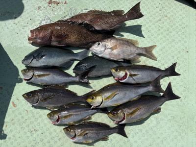 | 伝馬船釣果、オオモンハタ、イサギ、グレ、メイチなどが釣れてました |