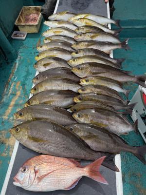 | オキアミ五目イサギ狙いで出船しました、良型多くお土産になりました、赤イカ釣りのご予約受付ます、土曜日は早め予約下さいね、今年より13000円に値上がりになりました申し訳ないですがよろしくお願いします🙇お疲れ様でした! |