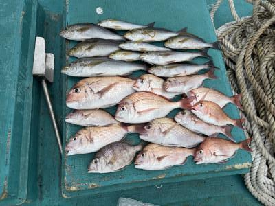 五目釣りに出船しました、真鯛、チダイ、イサギはまぁまぁ釣れましたがメイチはダメでした今日は涼しく最高の釣り日和でした、お疲れ様でした! |