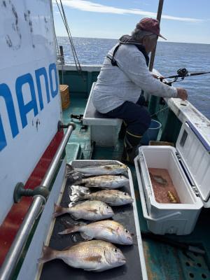 五目釣り出船しました、良型メイチ何匹か釣れましたが真鯛やイサギは厳しかったです、五目釣り出船中です、よろしくお願いします🙇 |