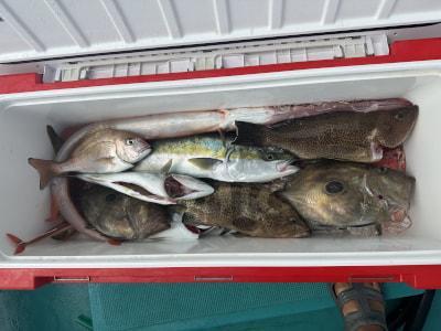落とし込み便 真鯛、メジロ、アカヤガラ等魚種豊富で皆様複数安打です☆ |