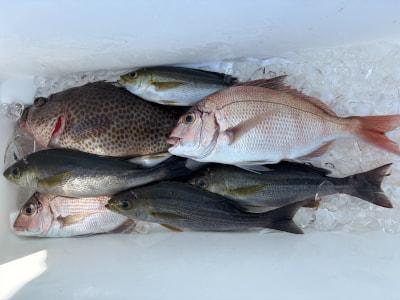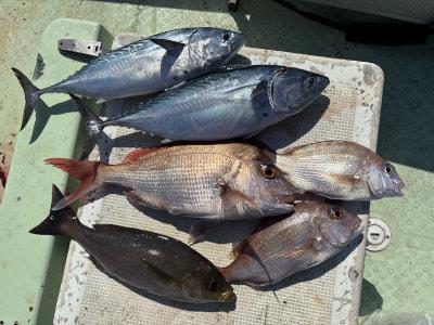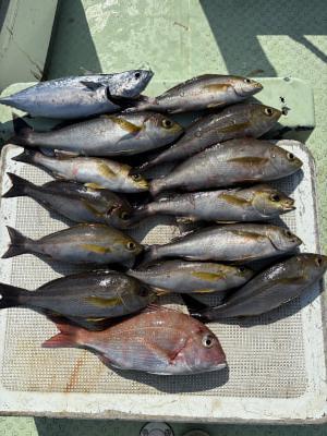 伝馬船釣果、ヤイト、イサギ、カワハギ、オオモンハタ、真鯛、などが釣れてました。 |