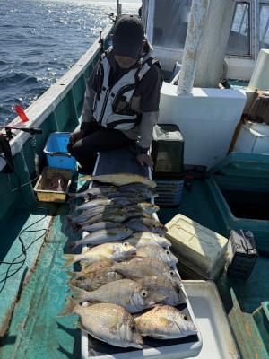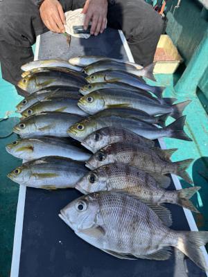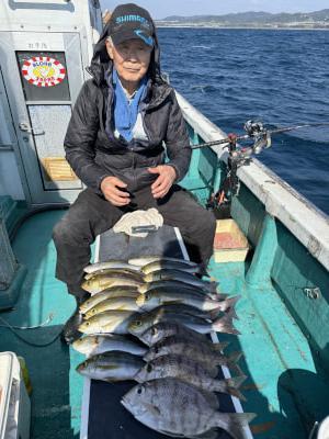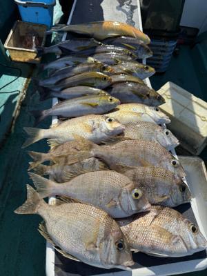 | オキアミ五目釣り出船しました、真鯛はなかったですがメイチダイ、イサギ良く釣れました、竿頭でメイチダイ10枚釣りました、天気良く皆さんお土産になったんで良かったです、お疲れ様でした! |