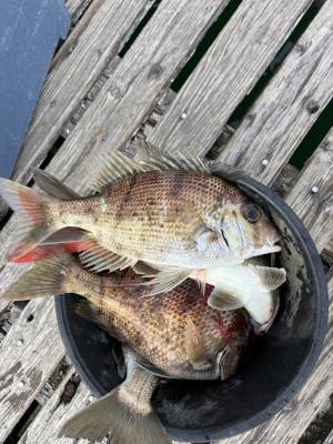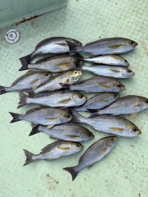 伝馬船釣果、イサギ、メイチ、カワハギ、チャリコ、ウスバ、アカハタなどが釣れてました。