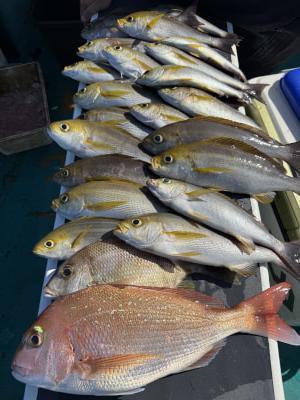 | オキアミ五目釣り出船しました前日よりあたり多くメイチダイ、真鯛、イサギなどポツポツ釣れお土産になりました、天秤オキアミカゴ〔小)はなるべく持参して下さい、レンタル道具ありますが落とした場合2000円頂いてます、よろしくお願いします、お疲れ様でした! |