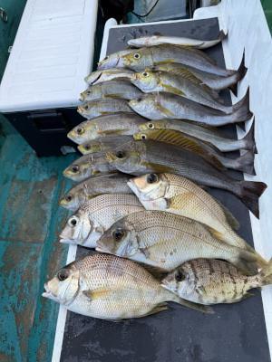 | オキアミ五目釣り出船しました、イサギ、メイチダイはポツポツ釣れましたが真鯛は釣れませんでした、天気良かったたんで良かったです、天秤オキアミカゴ〔小さめ)は持参して下さい、貸し道具ありますが落とした場合2000円頂いています、よろしくお願いします。お疲れ様でした! |