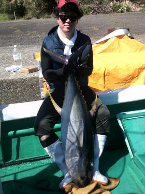 二人で 一匹釣れたらの目標で キハダ初挑戦してみました。 運よく 手頃なサイズが一匹釣れて 早々に帰ってきました。 |