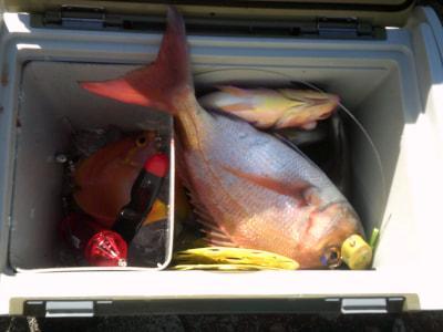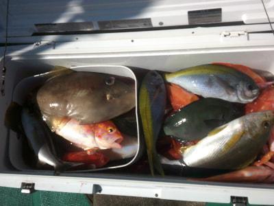 | オキアミ五目で出船しました。アカハタ・テンヤから始めて ウメイロ・アカイサギまで いろいろやってみました。 結構いろいろ釣れて 楽しい釣りになりました。 |