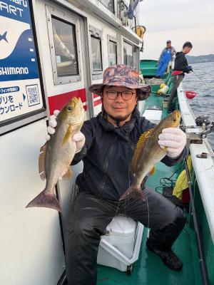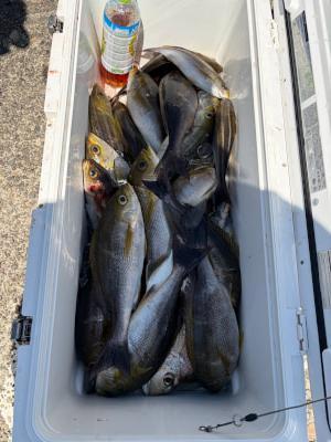 | オキアミ五目釣りに出船しました。 アミエビよりもオキアミの方がソウダガツオ少ない感じなのでオキアミでイサギ狙いました。 良型イサギ主体にTOPの方でイサギ30匹オーバーでした。天気良ければ毎日出船しますのでよろしくお願いします。 |