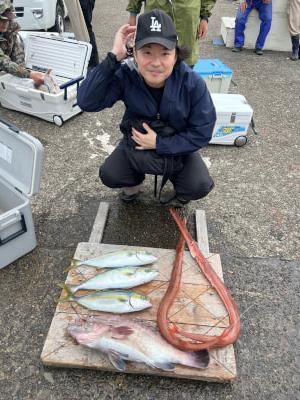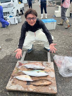 | 落とし込み釣りに出船しました。カンパチ70pオーバーも出て、ハマチ、ツバス、オオモンハタ、マハタ、アカヤガラなど色々釣れました。 |