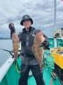 落とし込み釣りに出船しました。クエ、オオモンハタ、アカヤガラ、ヨコスジフエダイなど釣れました。クエは59pでした。 |