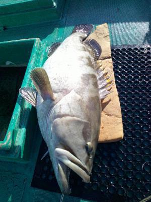 | シマアジメインで出船。朝イチから根掛かり口切れでトラブル多く諦めモードでしたが、何とか1枚ボウズ免れました。 今日もちょこっと泳がせ釣りでクエ釣れました。 |