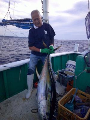 キハダフカセ釣りで出船。台風の影響で微妙な判断になりましたが、今シーズン初めてのキハダフカセでした。何とか1本上がりました。 |