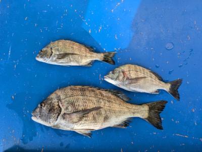 | 大丹生一文字で谷日出雄氏がチヌ3匹の釣果。 |