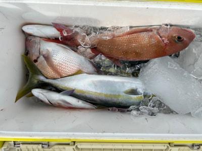 | マダイ、ハマチ、チダイ他マダイ良型混じりました。 |
