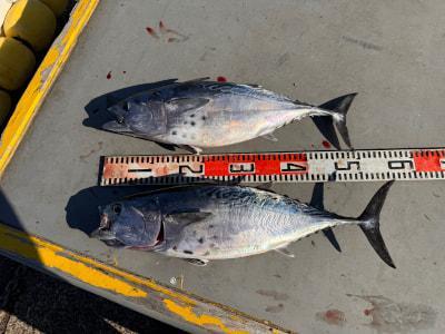 やりました!!🙌 狙い目、潮だるみ上層のタナで見事、2キロ級✨良型ヤイトカツオ55センチGET❗️👏👏 おめでとうございます😆 |
