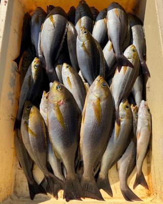 寒イサギ | 26〜35cm | 53匹 | 竿釣り 天秤サビキ ハリス3〜3,5号 鉄火面120 | アミエビ | |