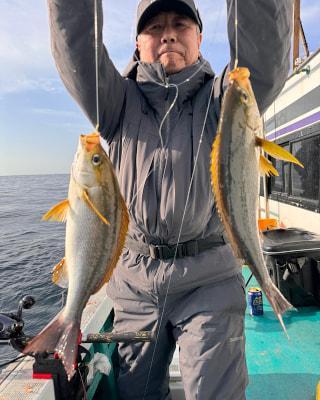 じゃジャーン🎶 ジャンボ級イサギ38センチ❗️、良型、ダブルGET❗️👏 |