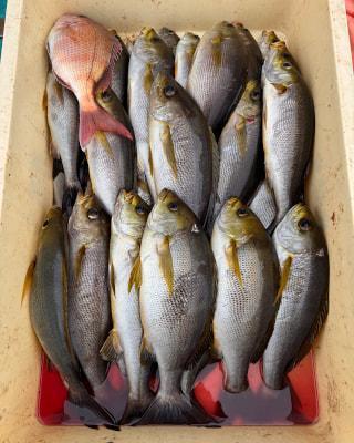 寒イサギ | 26〜38cm | 42匹 | 竿釣り 天秤サビキ ハリス3〜3,5号 鉄火面120 | アミエビ | |