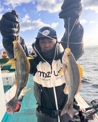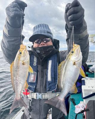 寒イサギ | 25〜32cm | 40匹 | 竿釣り 道糸PE3〜4号 天秤サビキ ハリス3〜3,5号 鉄火面120 | アミエビ | |