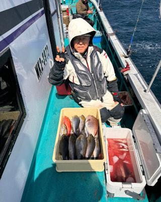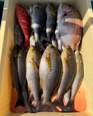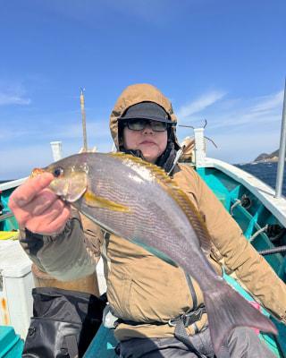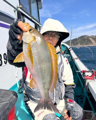 お次はイサギ仕掛けの細ハリスで見事、食べ頃 良型マダイ45センチGET❗️👏 おめでとうございます😆 |