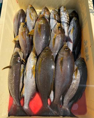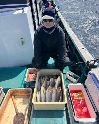 寒イサギ | 27〜35cm | 38匹 | 竿釣り 道糸PE3〜4号 天秤サビキ ハリス3〜3,5号 鉄火面120 | アミエビ | |