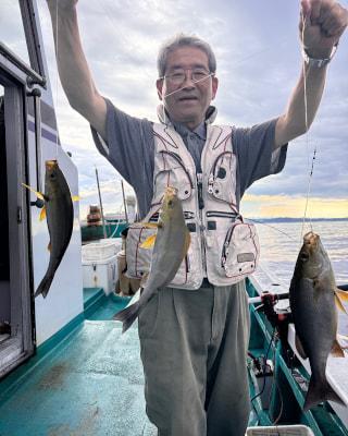 じゃジャーン🎶 やりましたー❗️ ジャンボ級イサギ39センチ❗️を筆頭に見事、パーフェクトの3連チャン❗️👏👏 おめでとうございます😆 |