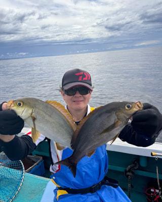 やりました!!🙌 イサギ仕掛けで見事、食べ頃マダイ46センチGET❗️👏 おめでとうございます😆 |