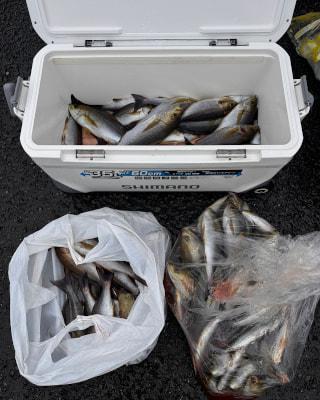 秋イサギ🍁 | 26〜37cm | 74匹 | 竿釣り 天秤サビキ ハリス3〜3,5号 鉄火面120 | アミエビ | |