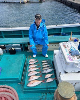 マダイ | 27〜46cm | 9匹 | 竿釣り 天秤フカセ ハリス5〜6号 4,5〜6b(3ヒロ〜4ヒロ)まで マダイ針10、11号 おもり100、120 オキアミ用コマセカゴ | オキアミ | |