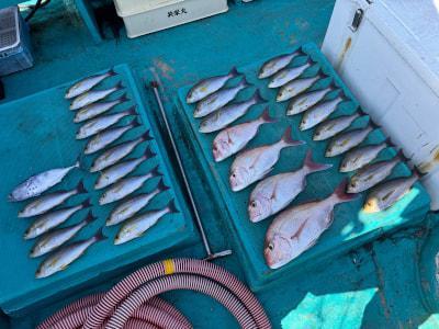 | 別船 オキアミ五目 マダイ、青物狙いで出船❗️🎣 マダイ他、イサギ、ジャンボヒラアジ、サバ、ヤイトカツオなど… あたり多く楽しめ🎶 お土産になりました👍😊 |