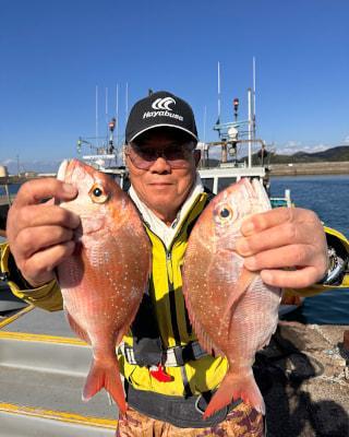 マダイ | 33〜48cm | 7匹 | 竿釣り 天秤フカセ ハリス5〜6号 4,5〜6b(3ヒロ〜4ヒロ)まで マダイ針10、11号 おもり120 オキアミ用コマセカゴ | オキアミ | |