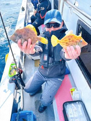 カワハギ | 18〜26cm | 21匹 | 胴付き仕掛け、重り30号 | 生アサリ | |