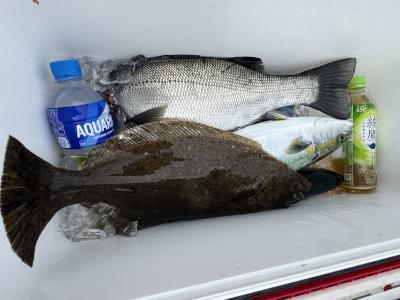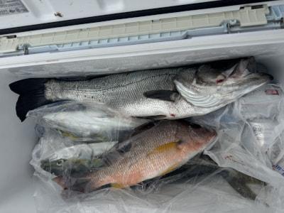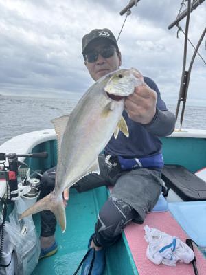 カンパチ | 40〜48cm | 3匹 | 落とし込み仕掛け、重り30〜50号 | 小アジ |