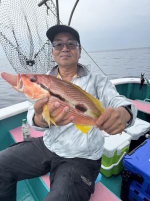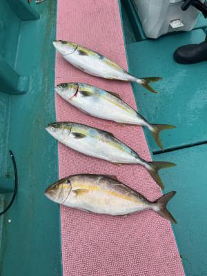 カンパチ | 43cm | 1匹 | 落とし込み仕掛け、重り40号 | 小アジ | |