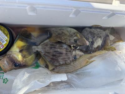 カワハギ | 18〜24cm | 胴付き3本針、重り30号 | 生アサリ |