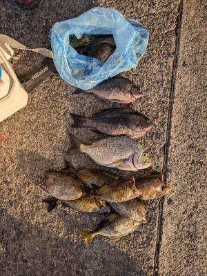 グレ | 34〜36cm | 2匹 | フカセ釣り | オキアミ |