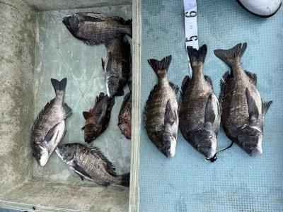 チヌ | 22〜38cm | 17匹 | 短竿 | シラサエビ |