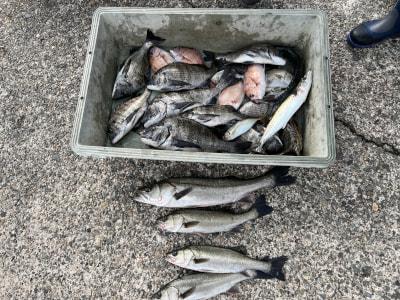 チヌ | 30〜47cm | 15匹 | 長竿 | シラサエビ他 |