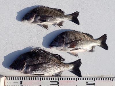 チヌ | 36〜42cm | 3匹 | フカセ釣り ウキ下2.5ヒロ ハリス1.5号 針・チヌ4号 | オキアミ |