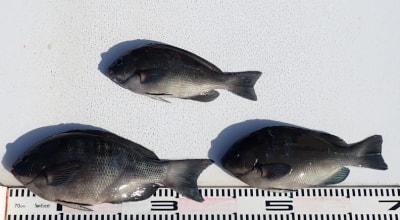 グレ | 29.5〜37cm | 3匹 | フカセ釣り ウキ下1.5ヒロ ハリス1.75号 針・グレ5号 | オキアミ |