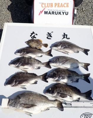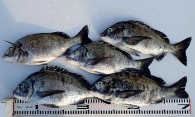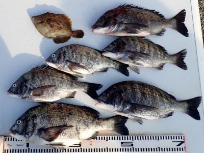 チヌ | 31〜43cm | 17匹 | フカセ釣り ウキ下3〜4ヒロ ハリス1.5号 針・チヌ2号 | オキアミ |