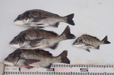 チヌ | 40〜44cm | 3匹 | 紀州釣り ウキ下4ヒロ ハリス1.5号 針・チヌ2号 | コーン |