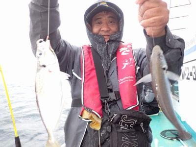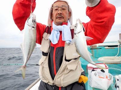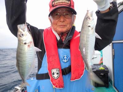 マアジ | 25〜30cm | 40〜60匹 | 鉄仮面120号 ハリス4号4本針 | コマセ・アミエビ |