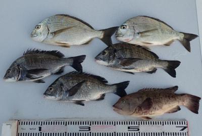 チヌ | 39〜45cm | 3匹 | フカセ釣り ウキ下3ヒロ ハリス1.75号 針・グレ6号 | オキアミ |
